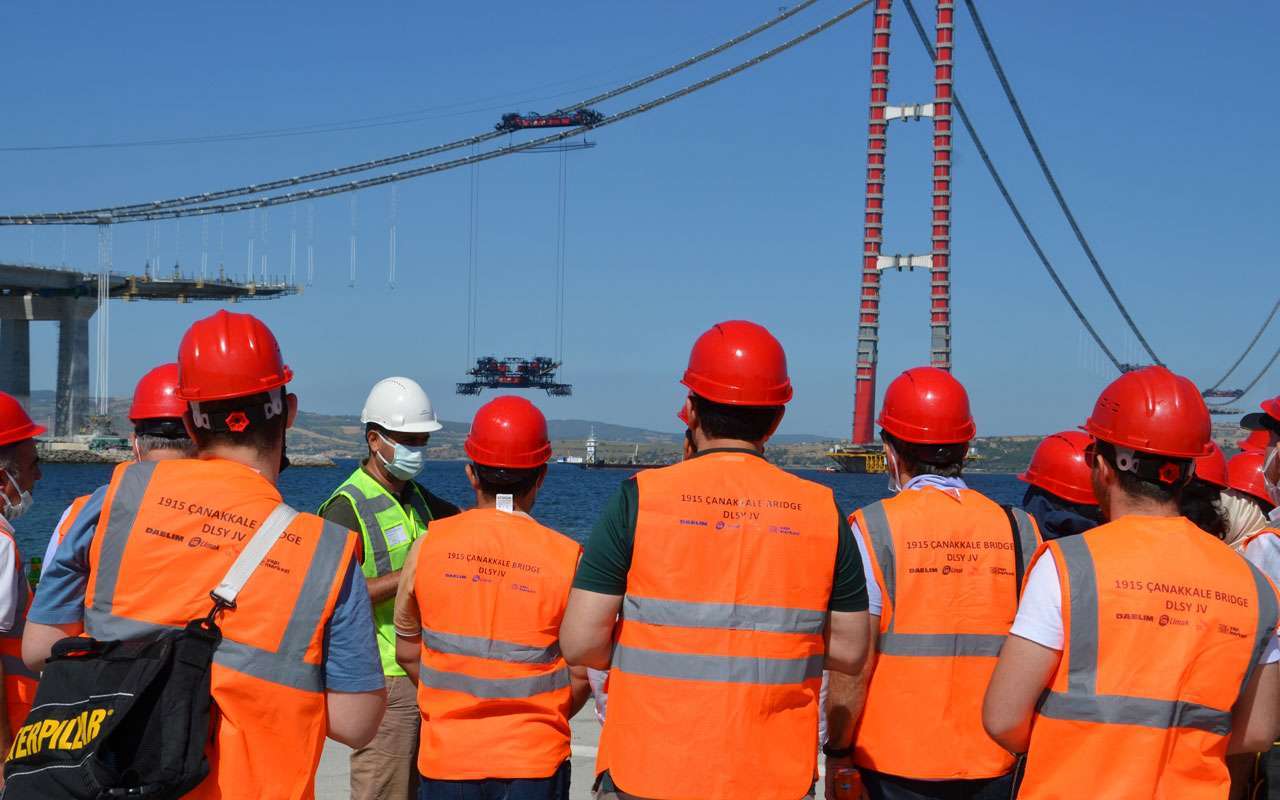 BURSA (İGFA) - Mimar Mühendisler Grubu (MMG) Bursa Şubesi tarafından; tamamlandığında 4 bin 608 metre toplam köprü uzunluğa, 2 bin 23 metre merkez açıklığa ve 318 metre toplam köprü kule yüksekliğine sahip, dünyanın en uzun açıklıklı asma köprüsü olarak dünya mühendisliği tarihinde yerini alacak olan 1915 Çanakkale Köprüsü’ne teknik gezi düzenlendi.