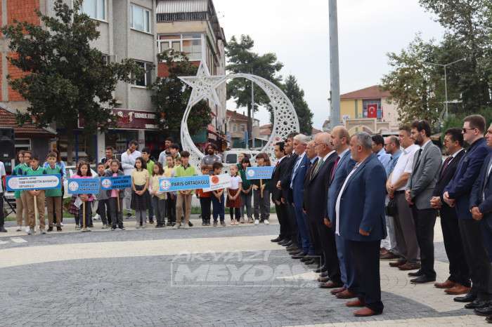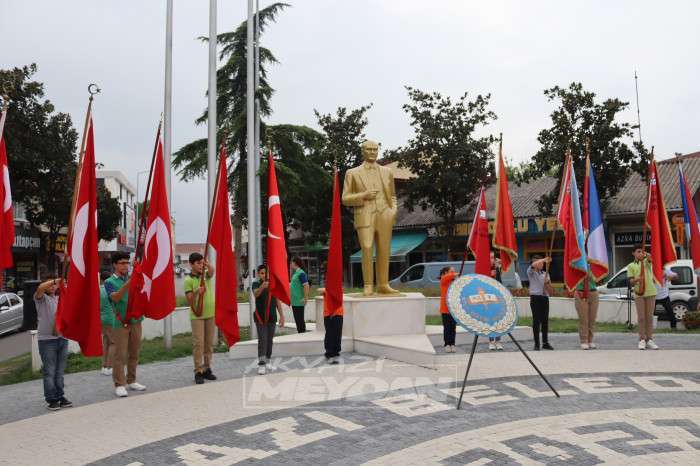 Akyazı Atatürk anıtı önünde gerçekleşen törene İlçe milli eğitim müdürü Recep Özdemir, ilçe siyasi parti başkanları, Sivil toplum Kuruluş Temsilcileri, Şube müdürleri, kurum amirleri ve öğrenciler katıldı.
