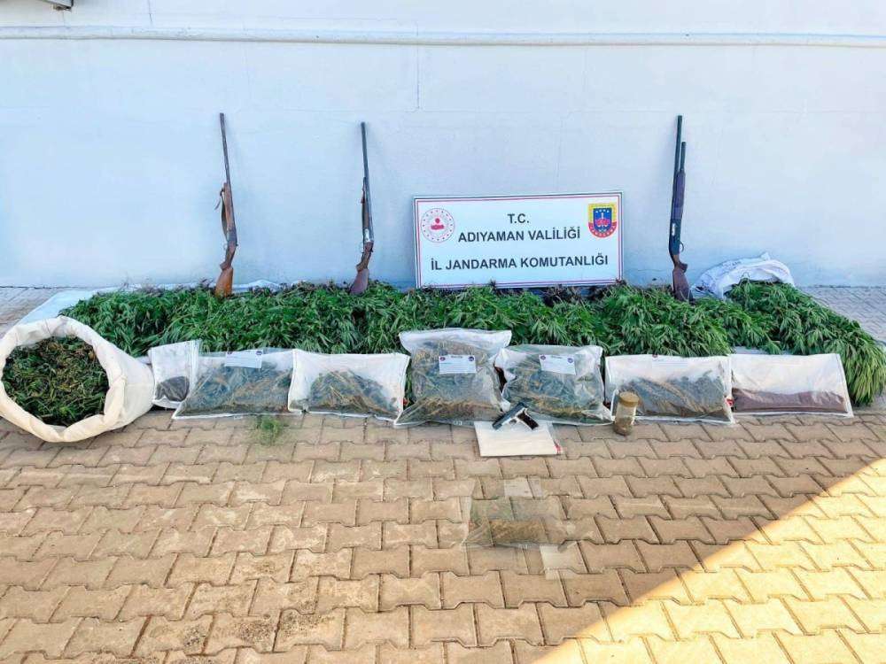 ADIYAMAN (PHA) - Adıyaman İl Jandarma Komutanlığı ekipleri, başarılı bir operasyonla yüklü miktarda uyuşturucu madde ve silah ele geçirdi.