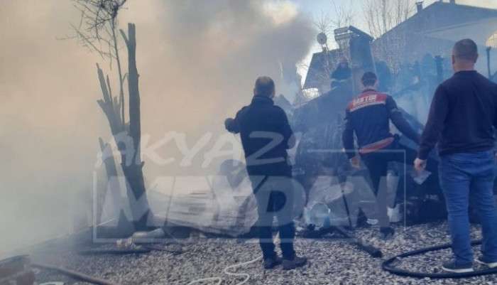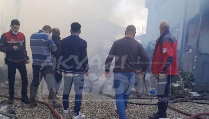 Akyazı'da ahır ve samanlık yandı. Ahırdaki keçiler yangından son anda kurtarıldı.