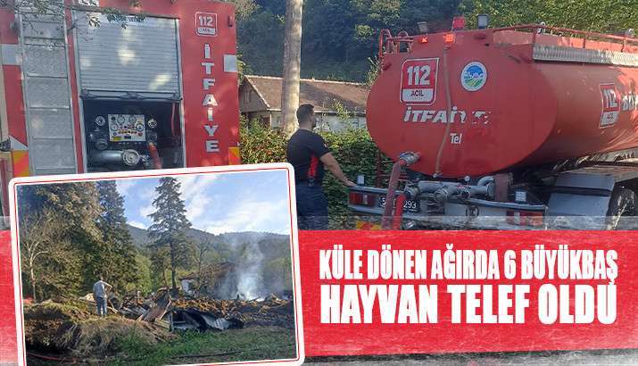 Hendek Karadere mahallesinde iki katlı ahır ve samanlıkta çıkan yangında 6 büyükbaş hayvan telef oldu.
