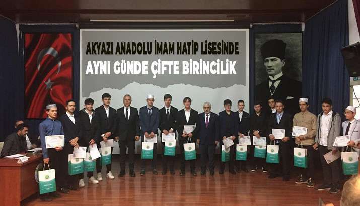 AKYAZI ANADOLU İMAM HATİP LİSESİNDE AYNI GÜNDE ÇİFTE BİRİNCİLİK