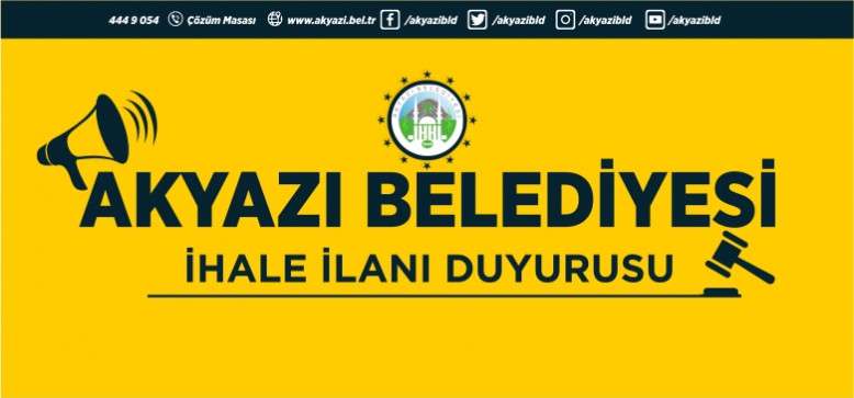 İhaleler, Akyazı Belediyesi Meclis Toplantı Salonunda Belediye Encümeni (İhale Komisyonu) huzurunda 2886 sayılı Devlet İhale Kanununun 45. maddesine göre Açık Teklif Usulü ile ayrı ayrı yapılacaktır.