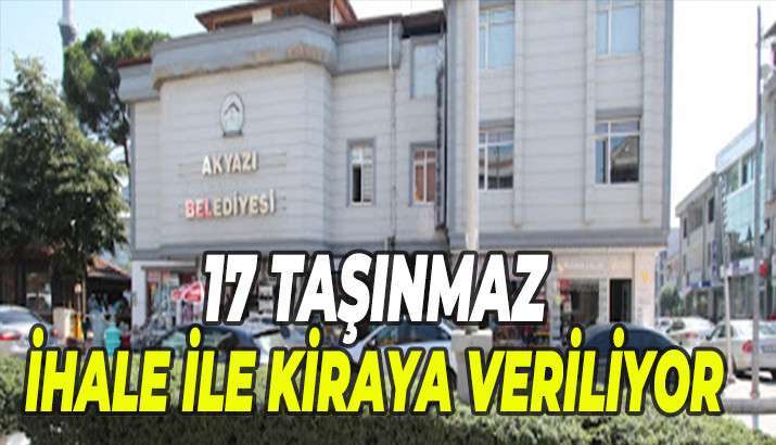 Akyazı Belediyesi mülkiyetinde bulunan 17 taşınmazı kiraya veriyor