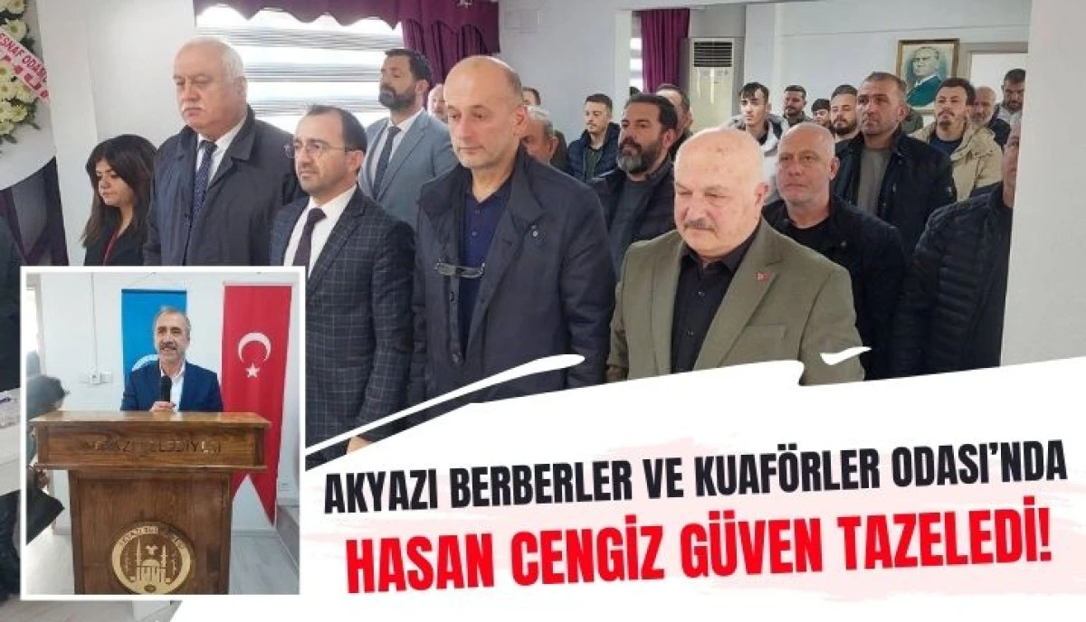 Akyazı Berberler ve Kuaförler Odası'nda Hasan Cengiz yeniden seçildi! Yoğun katılımlı kongrede üyelerine teşekkür eden Cengiz, esnaf için güven tazelemiş oldu.