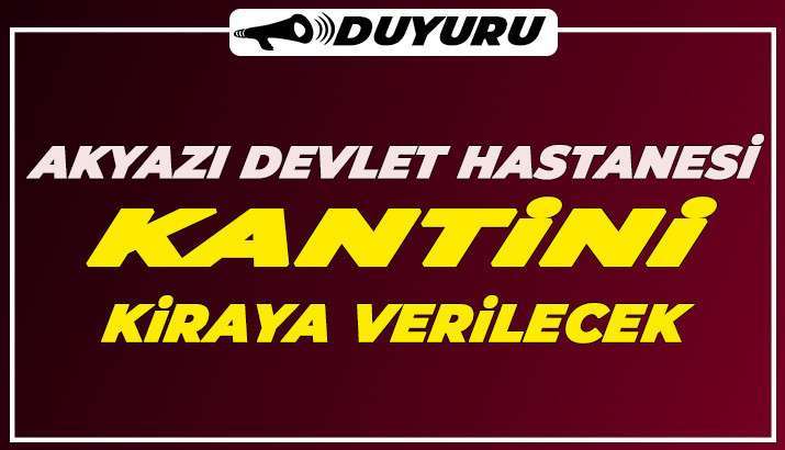 Mülkiyeti Hazineye ait kullanım hakkı il sağlık müdürlüğüne tahsisli olan aşağıda belirtilen Akyazı Devlet Hastanesi bünyesindeki 65 m2 Kantin Alanı, 2886 sayılı Kanunun 45. maddesi gereği açık teklif usulü ile 3 yıllığına kiraya verilecektir.