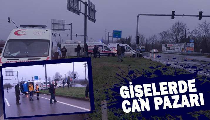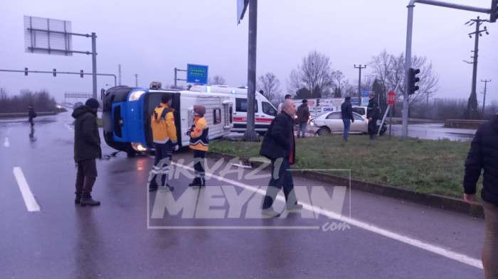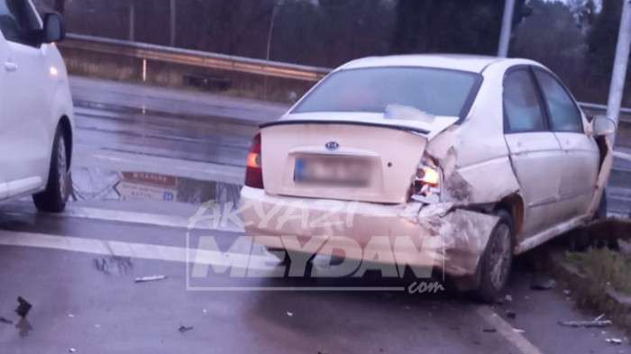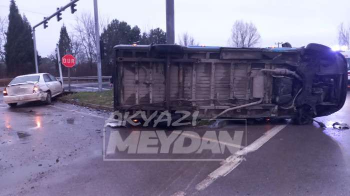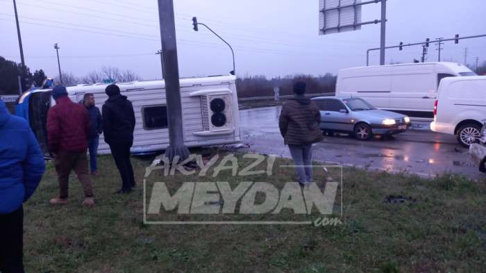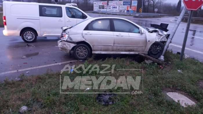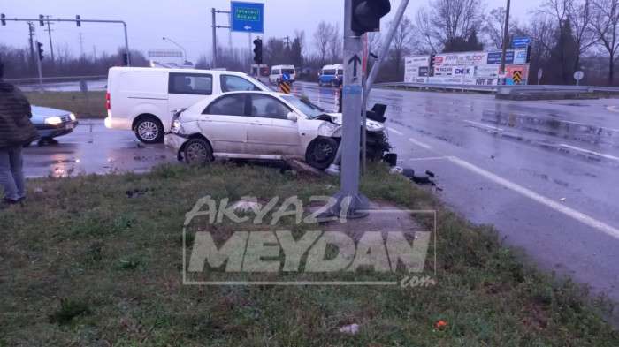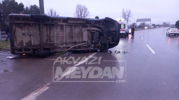 Edinilen bilgilere göre D140 karayolu Akyazı Tem otoyolu kavşağında R.A. yönetimindeki 54 TA *** otomobil ile M.D. yönetimindeki 54 M **** plakalı dolmuş minibüsü çarpıştı. Kazanın etkisiyle savrulan otomobil refüşte bulunan tabelaya çarparak dururken yolcu minibüsü devrildi.
