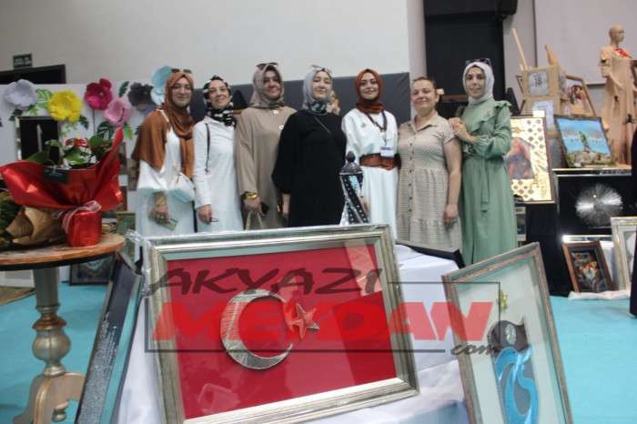 Akyazı Anadolu Kalkınma Vakfı Halk Eğitim Merkezi kursiyerleri tarafından yıl boyu süren kurslarda el emeği göz nuru ürünler Recep Tayyip Erdoğan Spor Kompleksinde vatandaşların beğenisine sunuldu.