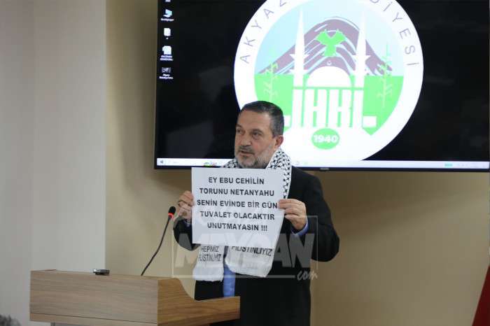 Başkan Bilal Soykan’ın konuşmasının ardından gündem dışı konuşmalarda söz alan AK Parti’li Meclis Üyesi Abdurrahim Atmaca İsrail’in Filistin’de sürdürdüğü zulmü kınadı ve hazırladığı pankarta tepkisini dile getirdi. Belediye Başkanı Bilal Soykan da İsrail’in masum Filistin halkına uyguladığı zulmü lanetleyerek, “ İnanıyoruz ki İsrail’in sonu da bütün zalimler gibi olacak” şeklinde konuştu.