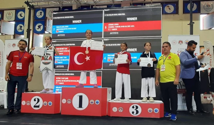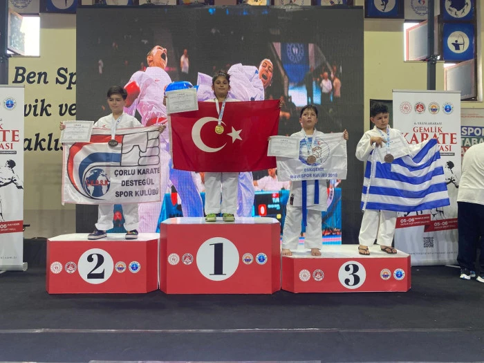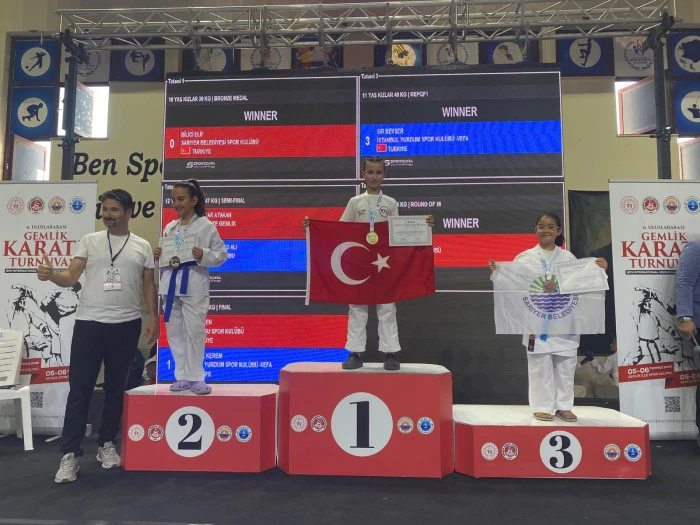 Bursa / Gemlik – 5-6 Temmuz 2025 tarihlerinde, 7 ülkenin katılımıyla gerçekleşen ve 90 kulüpten 980 sporcuyu ağırlayan 6. Uluslararası Gemlik Karate Turnuvası'nda Akyazı rüzgarı esti! Antrenör Sezai Yolcuoğlu önderliğinde İlçe Spor Müdürlüğü bünyesinde çalışmalarını sürdüren Akyazı karate takımı, toplamda 4 altın, 2 gümüş ve 1 bronz madalya kazanarak büyük bir başarıya imza attı. Bu göz kamaştıran performansıyla Akyazı karate takımı, genel klasmanda 90 kulüp arasında 11. sıraya yerleşti.