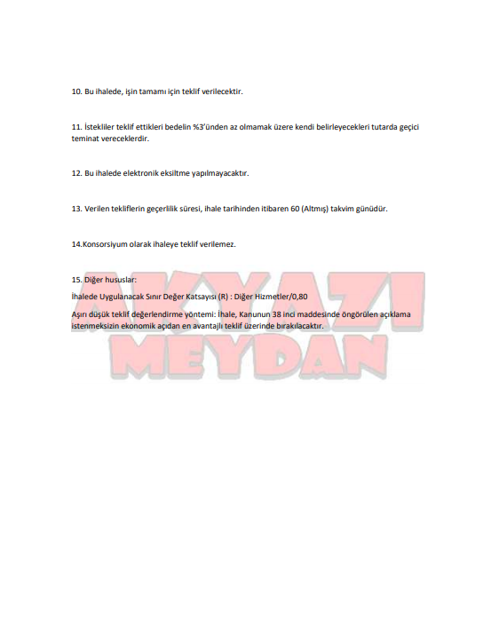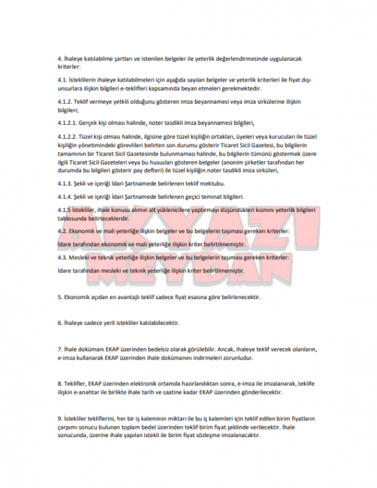 2021/437645 ihale için 09.08.2021 tarihi saat 10:00’a kadar teklif verilebilecek.