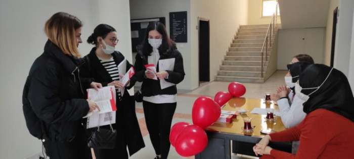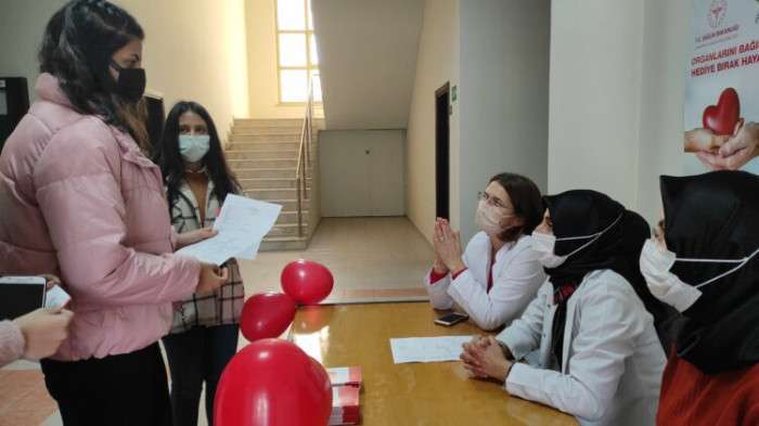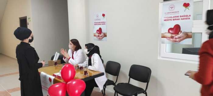 Organ bağışı ve nakli konusunda da bilgiler veren Dr. Betül Tütüncü şunları söyledi: “Hayat kurtarma anlamında, sağlıklı olan her organ bağışlanabilir. 18 yaşını doldurmuş ve doğru ile yanlışı ayırabilme yeteneğine sahip herkesin, başta kalp olmak üzere, akciğer, böbrek, karaciğer ve pankreas gibi organlar; kalp kapağı, göz kornea tabakası, kas ve kemik iliği gibi dokuları bağışlanabilir. Dünyada her yıl binlerce kişi organ yetmezliğinden hayatını kaybediyor. Sadece hastalar değil aileleri de hayatlarını sarsan bu düşmanla savaşmak zorunda kalıyor. 3-9 Kasım Organ Bağışı haftası münasebetiyle İlçemizin faklı yerlerinde açtığımız stantlarla kafalardaki soru işaretlerine cevap verip vatandaşlarımıza organ bağışının önemini anlatıp bilgilendirdik. Bugün Yüksek okuldaydık broşürleri dağıtıp öğrencileri bilgilendirdik, standı ziyaret edip bağışta bulunan öğrenciler oldu. Bizlere ve öğrencilerimize bu imkanı tanıyan ve yakın ilgi gösteren Okul müdürü Prof.Dr.Azize Alaylı ve okul sekreteri Yusuf Şahinoğlu’na kurumumuz adına teşekkür ediyoruz dedi.