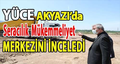 Akyazı Kuzuluk’ta inşa edilecek ‘Seracılık Mükemmeliyet Merkezi’ alanında incelemelerde bulunan Başkan Ekrem Yüce, “Bugün burada 45 dekar alan üzerinde jeotermal ısıtmalı, 25 dekar topraksız üretim yapacak olan örnek bir sera inşa etmek için bir araya geldik. Öncelikle âtıl durumda olan bu araziyi elverişli bir hale getirmek için saha çalışmalarımızı tüm hızıyla sürdürüyoruz. 7 bin kamyon dolgu malzemesi ile araziyi elverişli hale getireceğiz” dedi.
