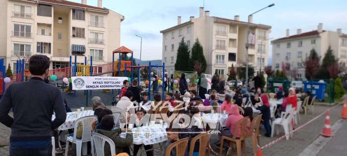 Akya Toki evlerinde ikamet eden Akyazı müftülüğü Gençlik Koordinatörlüğü hocaları Diyanet İşleri Başkanlığının proje ortağı olduğu ÇEDES PROJESİ (Çevreme duyarlıyım, değerlerimi seviyorum) kapsamında sitede oturan çocuklara özel iftar organizesi yaptı.