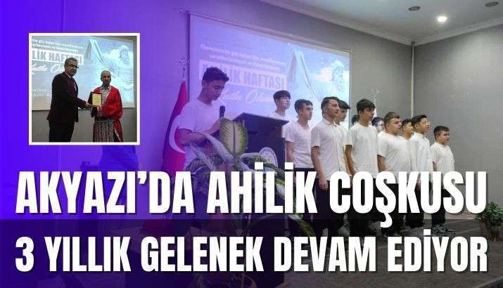 Akyazı Mesleki Eğitim Merkezi'nin düzenlediği Ahilik kutlaması, 3 yıl önce Emrah Önal'ın başlattığı gelenekle bu yıl da coşkuyla gerçekleştirildi. Yılın ahisi ödüllerle onurlandırıldı.
