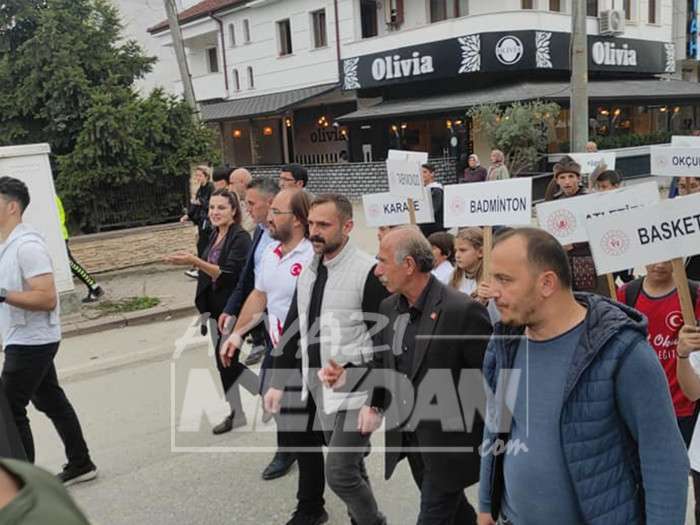 İlçede farklı branşlardaki sporcuların katılımıyla İlçe Gençlik ve Spor Müdürlüğü'nden çarşıya kadar yürüyüş yapıldı.