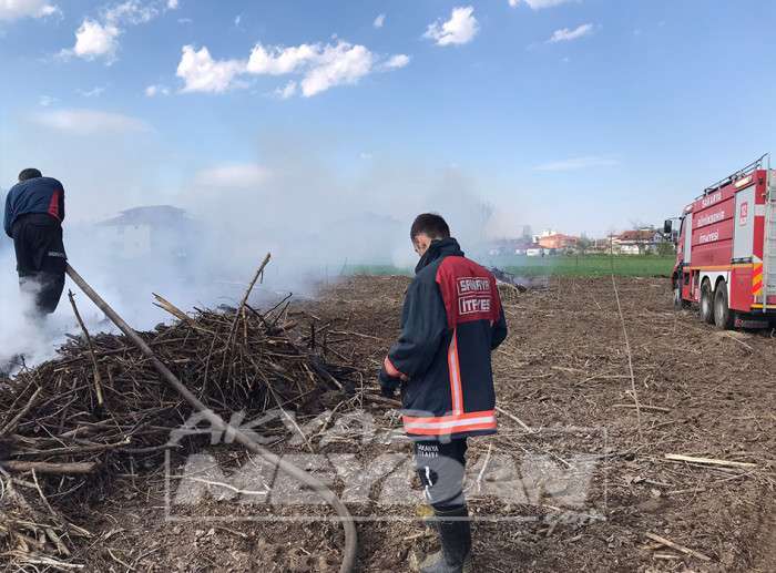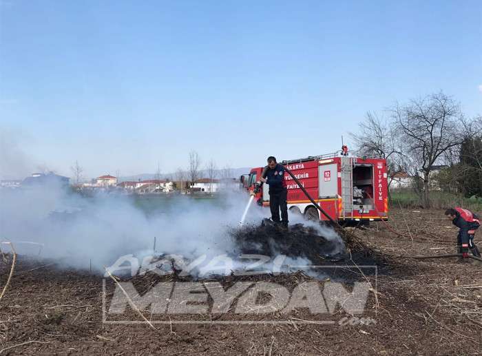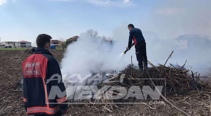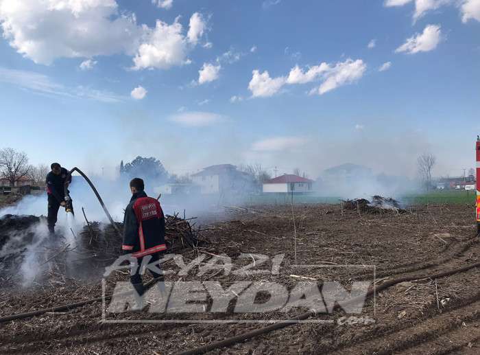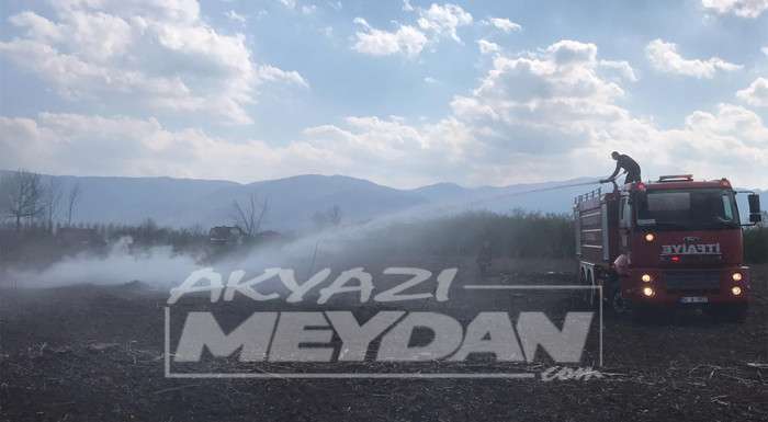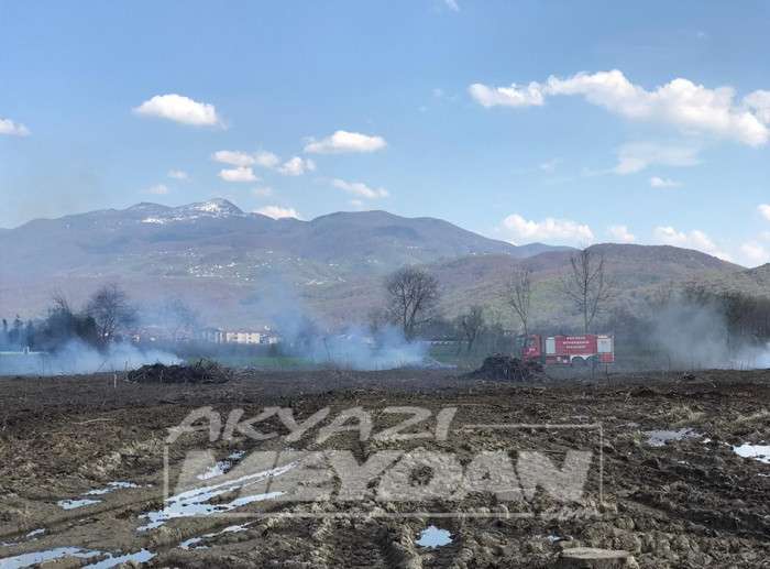 Akyazı'da bir tarlada yakılan anız ateşinden çıkan dumandan etkilenen vatandaşların ihbarı üzerine bölgeye itfaiye ekipleri yangına müdahale etti.