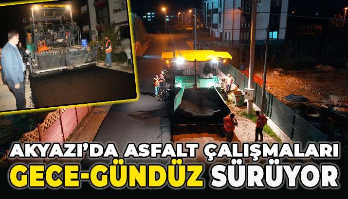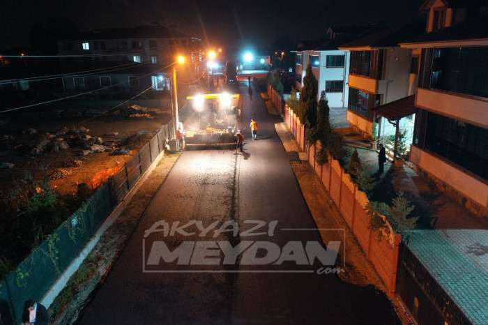 Akyazı Belediyesi ilçe merkezinde başlattığı asfalt çalışmalarını gece-gündüz demeden sürdürüyor.