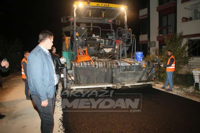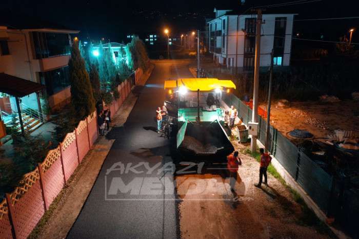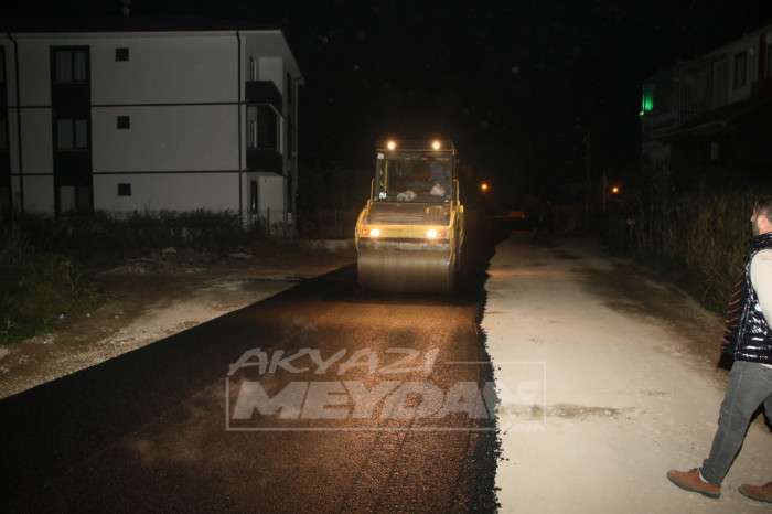 AKYAZI’DA ASFALT ÇALIŞMALARI GECE-GÜNDÜZ SÜRÜYOR