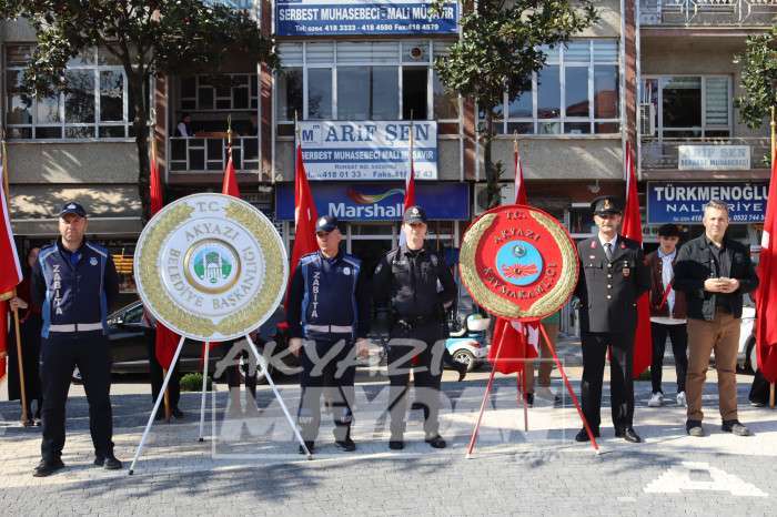 12’de başlayan tören saygı duruşu ve istiklal marşının ardından ilçe kaymakamı Yakup Güney ve Akyazı Belediye Başkanı Bilal Soykan’ın Çelenk sunumunun ardından sona erdi.
