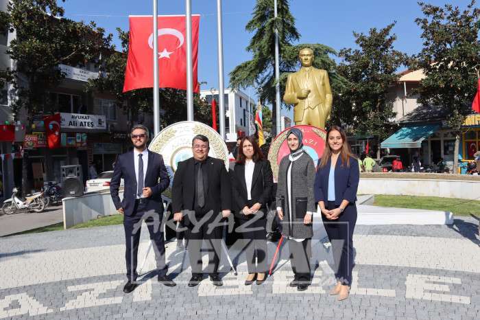 29 Ekim Cumhuriyet bayramı kutlamaları Akyazı’da Atatürk anıtı önünde çelenk sunumuyla başladı. Saat 12.00’de başlayan çelenk törenine Akyazı ilçe kaymakamı Yakup Güney, Akyazı Belediye Başkanı Bilal Soykan, Akyazı garnizon komutanı Akyazı Cumhuriyet başsavcısı Ufuk Turan, Binbaşı Aksoy Ağtürk, İlçe emniyet müdürü Hasan Fehmi Talay, Siyasi parti temsilcileri, meclis üyeleri, STK temsilcileri, Emniyet, Jandarma ve zabıta personelleri, Öğretmen ve öğrencilerin katılımıyla gerçekleşti.