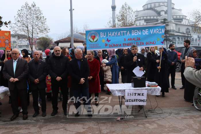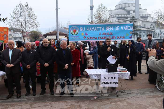 3 Aralık Dünya Engelliler Günü münasebeti ile Akyazı çarşı merkezde günün anlam ve önemini belirtten yazıyı Akyazı Özel Eğitim Uygulama Okulu Müdürü Uğur Arslan okudu. Arslan; "3 Aralık Birleşmiş Milletler’in 1992 yılında almış olduğu karar sonrası 'Uluslararası Engelliler Günü' olarak ilan edilmiştir. 3 Aralık, o gün itibariyle tüm dünyada ve ülkemizde bu özel insanların sorunlarına dikkat çekmek için belirlenmiş bir gündür. Dolayısıyla 3 Aralık Dünya Engelliler Günü kutlanacak veya bayram yapılacak bir gün değil, karşılaşılan sorunların gündeme getirileceği ve bunların çözümü için yapılabileceklerin ele alınacağı bir tarih olmalıdır.
