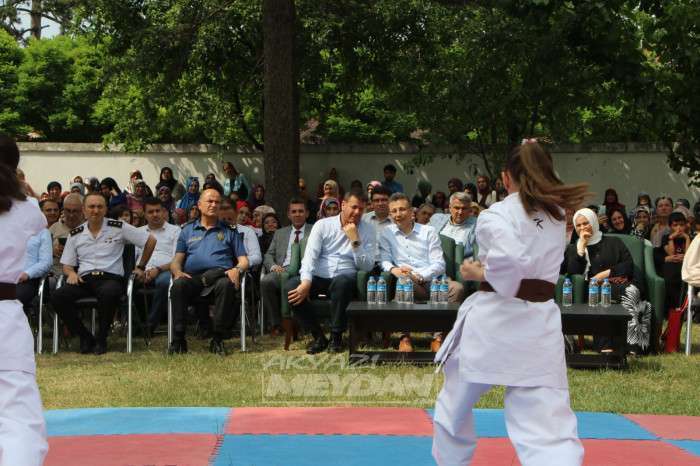 Akyazı Kaymakamı Yakup Güney ise, “ Kurslarımızda öğrencilerimizin heyecanlarına ortak oluyoruz. Büyük bir heyecanla kurslarımıza katılan kursiyerlerimizin bir yıl boyunca emek verdikleri eserlerin sergisini bugün açıyoruz. Ben emeği geçen herkesi tebrik ediyorum” dedi. Kaymakam Yakup Güney’in konuşmasının ardından karate ve tekvando eğitimi alan öğrenciler kısa bir gösteri gerçekleştirdi. Gösteri sonrasında Kaymakam Yakup Güney, Belediye Başkanı Bilal Soykan ve protokol üyeleri serginin açılışını gerçekleştirdi ve stantları gezerek eserleri inceledi. Flografi, deri, ahşap ve kağıt rölyef, dikiş nakış, kilim dokuma, el sanatları yağlı boya ve resim gibi kurslarda üretilen eserler 2-3 Haziran tarihleri arasında Akyazı Spor Salonu’nda sergilenecek.
