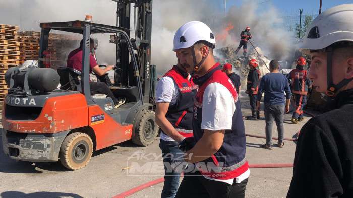Akyazı ilçesi Mudurnu deresi kenarında bulunan bir içecek fabrikasının bahçesinde bulunan palet ve bazı ürünler bilinmeyen sebepten alev aldı.