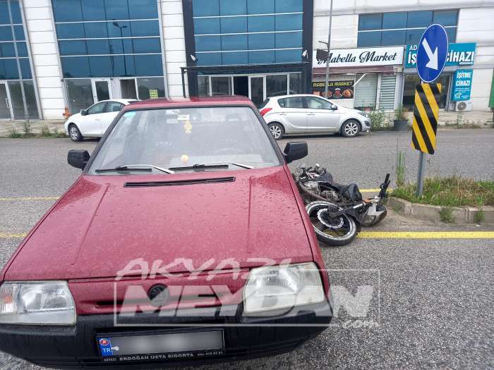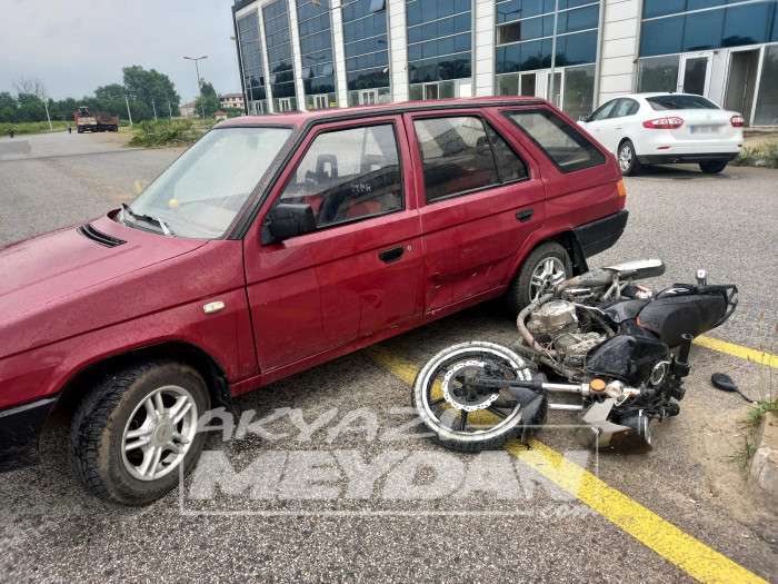 Edinilen bilgilere göre Akyazı Devlet Hastanesi önünde meydana gelen kazada lada marka otomobil dönüş yaptığı sırada motosiklet çarptı. Kazada ismi öğrenilemeyen motosiklet sürücüsü yaralandı. Hastane giden yaralıya tedavi altına alındı.