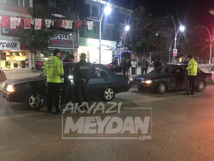 Akyazı ilçe emniyet müdürlüğü Polis ekipleri gece kartallarıyla (BEKÇİ) birlikte Ada Caddesi Gazisüleymanpaşa camii önünde oluşturulan uygulama noktasında araçları durdurarak kontroller yaptı.