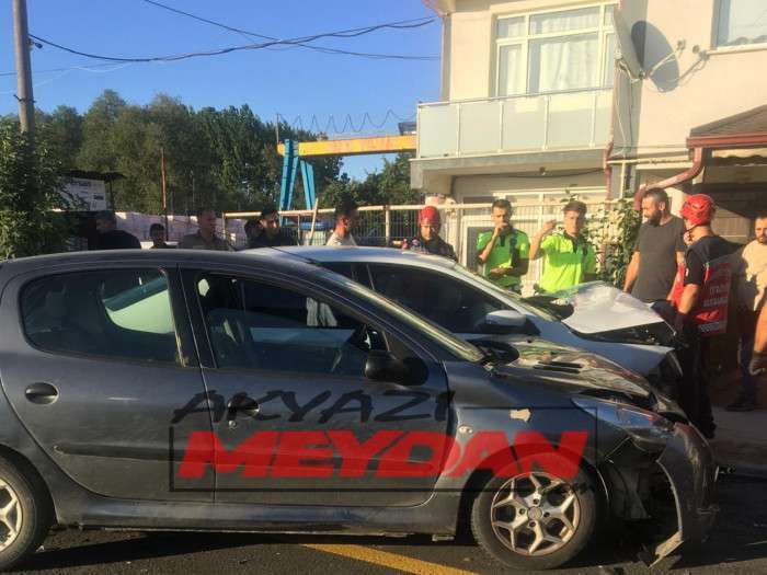 Akyazı'nın Fatih Mahallesi Ada Caddesi üzerinde meydana gelen kazada iki otomobilin çarpışması sonucu 2 kişi yaralandı. M.B.'nin kullandığı 14 LD *** plakalı otomobil ile S.U.'nun idaresindeki 34 UL **** plakalı otomobil sanayi girişinde çarpıştı.