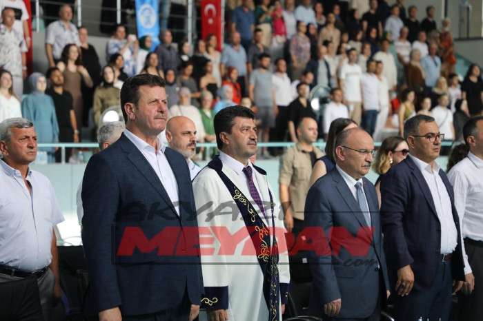 Saygı duruşu ve İstiklal Marşı’nın okunması ile başlayan tören öğrencilerin kortejiyle devam etti. Törenin açılış konuşmasını gerçekleştiren Sağlık Bilimleri Fakültesi Dekanı Azize Alaylı, “ Bugün Sağlık Bilimleri Fakültesi ve Sağlık Hizmetleri Meslek Yüksekokulu’ndan mezunlar vermenin sevincini ve gururunu yaşıyoruz. Kıymetli aileleri ile birlikte bizler de öğrencilerimizin mezuniyetinin heyecanını paylaşıyoruz. Sayın Rektörümüze bizlere Akyazı’da mezuniyet töreni düzenleme imkânı sunduğu için teşekkür ediyoruz. Törenin düzenlenmesinde bize her türlü desteği sağlayan Belediye Başkanımız Bilal Soykan’a da ayrıca teşekkür ederim. Mezun olan öğrencilerimize meslek hayatlarında başarılar diliyorum” dedi.