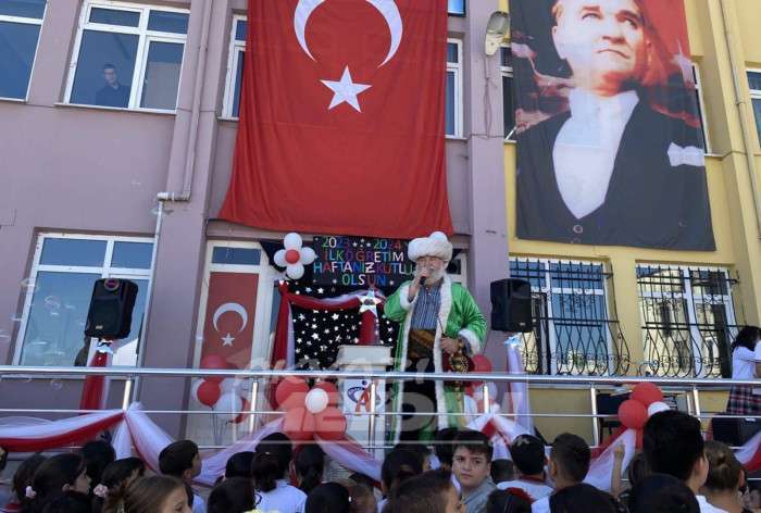 Programa daha sonra Okulumuz şiiri okunduktan sonra tiyatro ve çeşitli etkinliklerin ardından öğrencilerin okula yeni başlayan öğrenciye çiçek vermeyle devam etti.