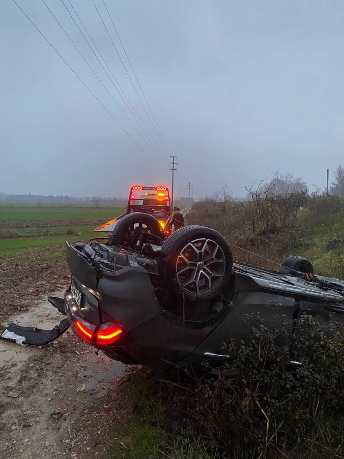 Akyazı D-140 Karayolu Balballı geçişinde korku dolu anlar yaşandı. Yağışın etkisiyle kontrolden çıkan otomobilin şarampole yuvarlanması sonucu meydana gelen kazada iki kişi yaralandı.