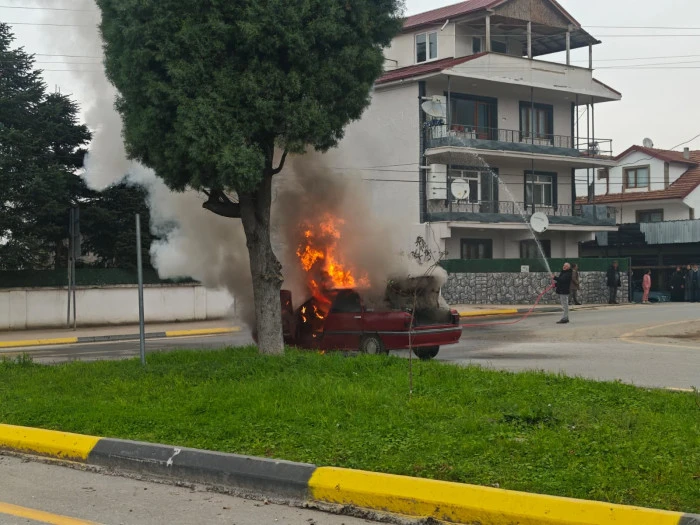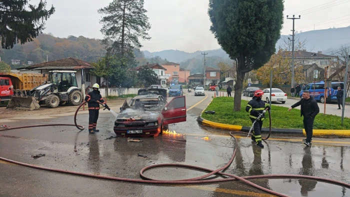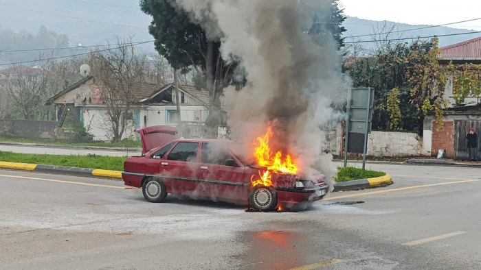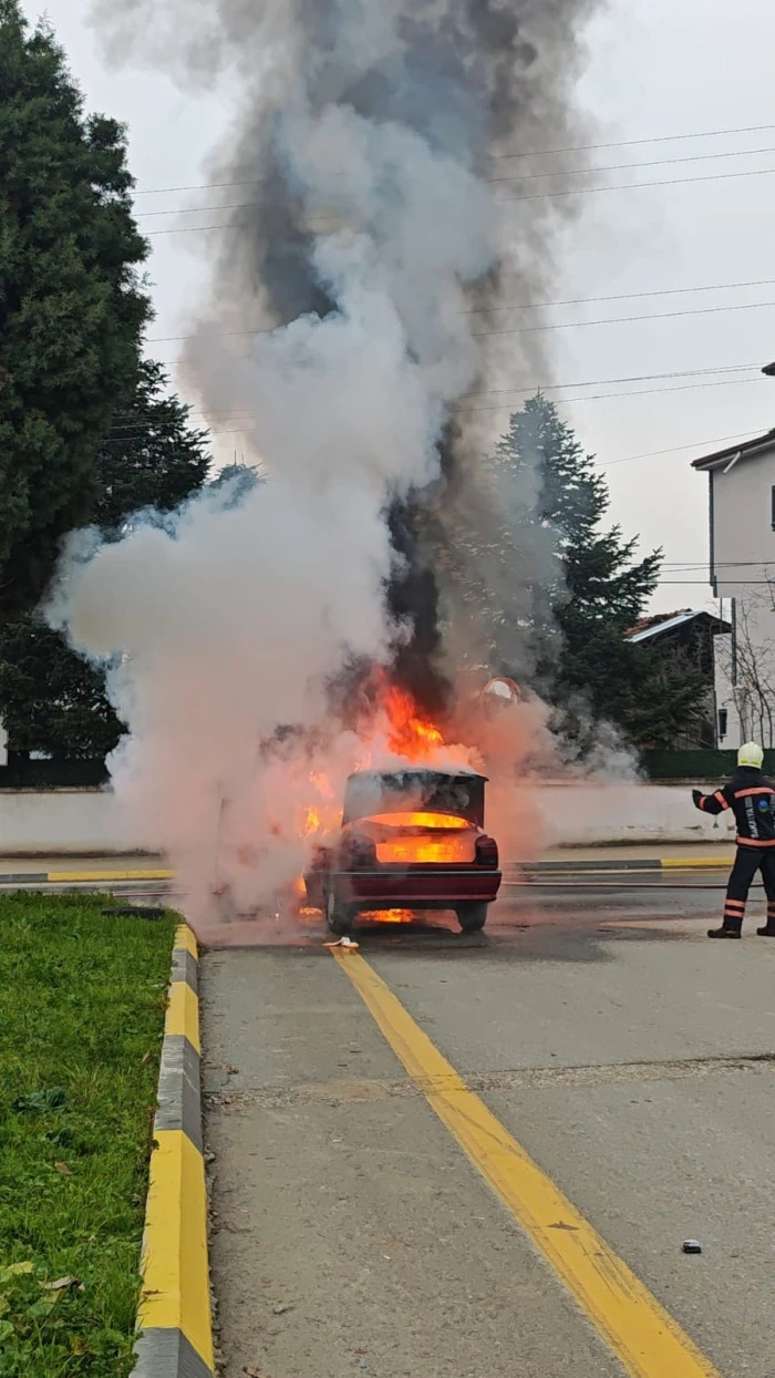 Sakarya’nın Akyazı ilçesi Pazarköy Mahallesi’nde bugün öğle saatlerinde hareket halindeki bir otomobilde yangın çıktı. Güzlek Kavşağı mevkiinde meydana gelen olayda, Hanife G. yönetimindeki araç seyir halindeyken motor kısmından dumanlar yükselmeye başladı.
