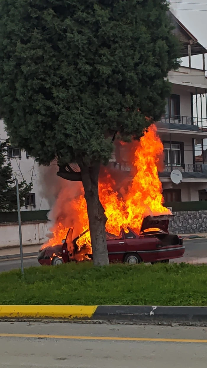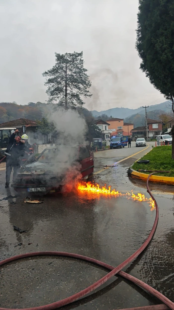 Akyazı’da Korkutan Araç Yangını: LPG’li Otomobil Alevlere Teslim Oldu
