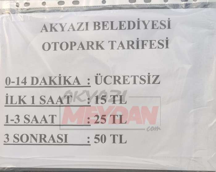Zam kervanına otopark ücreti de eklendi Akyazı’da otopark ücreti 1 saat 15 lira oldu.