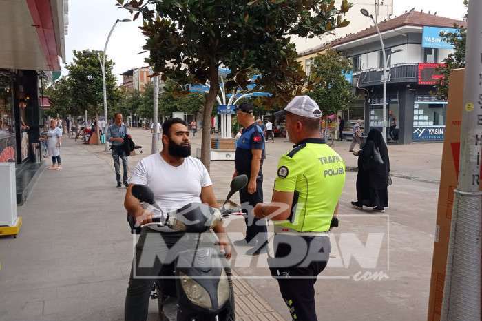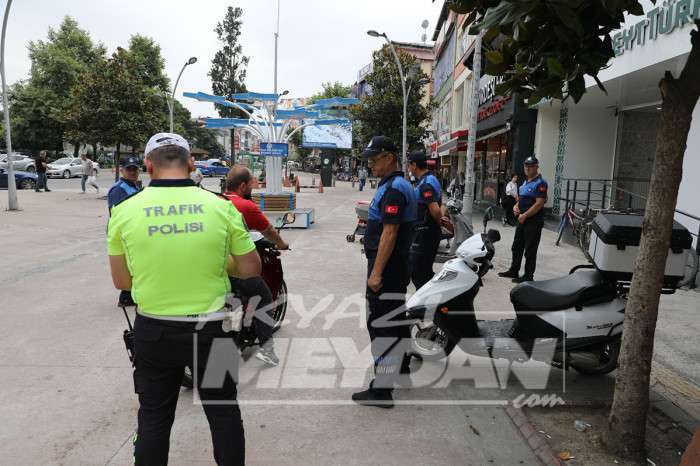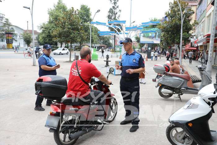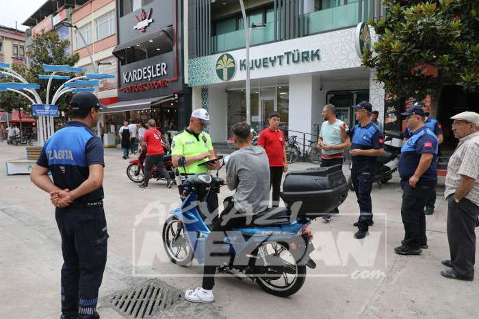 Akyazı Belediyesi Zabıta Müdürlüğü ve İlçe Emniyet Müdürlüğü ekipleri ile birlikte ilçe merkezinde trafiğe kapalı alanlarda motosiklet kullananlara yönelik denetim gerçekleştirdi.