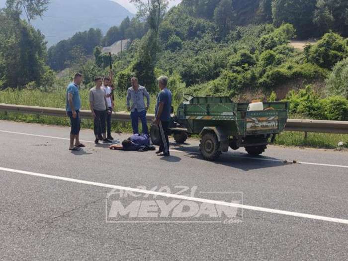 Akyazı D140 karayolu Reşadiye Mevkii’nde pat pat olarak adlandırılan tarım aracı kaza yaptı. Kazada başından yaralanan sürücünün yardımına kazayı görüp duran diğer sürücüler yardımına koştu.