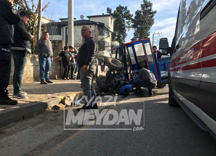Kaza Ada Caddesi Yeni mahalle imam hatip lisesi mevkiinde meydana geldi. Edinilen bilgilere göre L.Ö. yönetimindeki pat pat diye tabir edilen tarım aracı sürücüsünün hâkimiyeti kaybetmesi sonucu kontrolden çıkarak kaldırıma çarptı. İkiye bölünen araçta bulunan L.Ö. ile yanında bulunan kimliği belirlenemeyen bir kişide yaralandı.