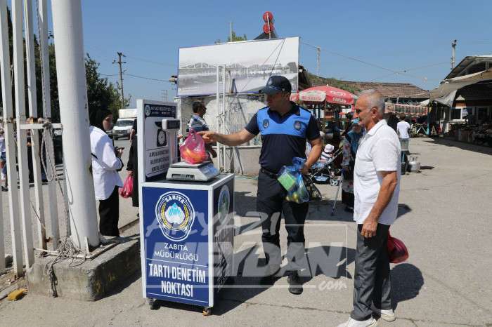 Denetimlerle ilgili Zabıta Müdürlüğü’nden yapılan açıklamada, “ Vatandaşlarımızın huzur içinde alışverişlerini yapabilmeleri için denetimlerimiz aralıksız bir şekilde devam edecek. Etiket hileleri, tartı hileleri gibi durumlarla vatandaşlarımızın mağdur edilmesine asla müsaade edilmemektedir. Belediyemizin yeni uygulaması ile pazaryeri girişine ‘Tartı Denetim Noktası’ oluşturuldu. Burada vatandaşlarımız aldıkları ürünleri tartarak kontrollerini sağlayabilmektedirler. Herhangi bir eksik gramaj tespiti durumunda ekiplerimiz tarafından gerekli cezai işlemler anında uygulanmaktadır” ifadelerine yer verildi.