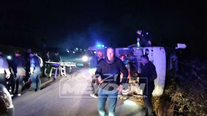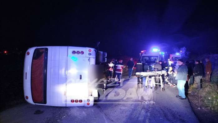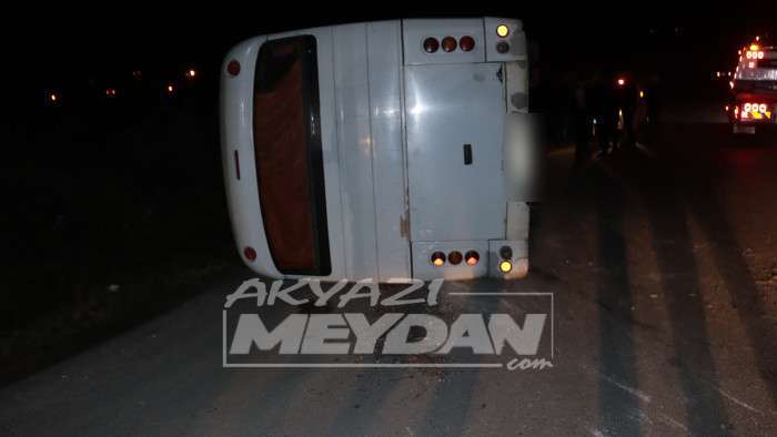 Akyazıda Servis Minibüsü Devrildi 2 yaralı