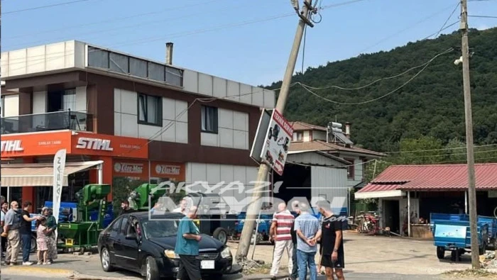 Akyazı'da kontrolden çıkan otomobil direğe çarptı, sürücü yaralandı. Kaza sonrası bölgede elektrikler kesildi.
