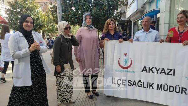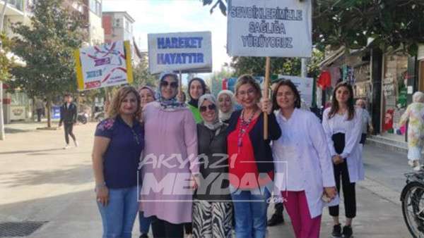 İlçe sağlık müdürlüğü ve Akyazı Sağlık hizmetleri MYO tarafından 3-4 Ekim Dünya Yürüyüş Günü nedeniyle ilçemizde yürüyüşe düzenlendi. Günümüzde toplumun fiziksel aktivite konusunda bilgi düzeyinin yetersiz olması, fiziksel aktivitenin sağlık için öneminin yeterince anlaşılamaması ve giderek daha hareketsiz bir yaşam tarzının benimsenmesi, toplumda obezite, kalp-damar hastalıkları, hipertansiyon, diyabet, osteoporoz gibi kronik hastalıkların görülme sıklığını artıran önemli nedenlerden biri olan Fiziksel hareketsizlik dünya genelindeki ölümlerin dördüncü önde gelen risk faktörü olarak belirlenen hastalıklara karşı farkındalık oluşturmak amacıyla bugün saat 15:00’de ilçe sağlık müdürlüğü önünden başlayan yürüyüş merkeze kadar devam etti, Yürüyüşe Akyazı ilçe sağlık müdürü Dr. Sevda Gürsel, SUBÜ Akyazı SHMYO tıbbi hizmetler teknikerler bölüm başkanı Dr. Öğr. Üyesi Fatma Cevahir, Akyazı Belediye başkan yardımcısı Mehmet Öztürk, Akyazı CHP ilçe başkanı Mustafa Sağır, Akyazı Gelecek Partisi İlçe Başkanı Hüseyin Güler, Deva partisi İlçe Başkanı Erkan Çoruhlu, Sağlık çalışanları, ilçe emniyet ve zabıta ekipleri öğrenciler ve vatandaşlar katılımıyla gerçekleşti.
