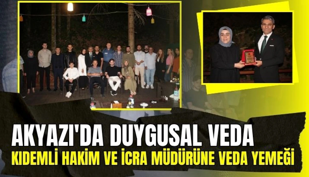 Altındere'deki Altıparmaklar Alabalık Tesisleri'nde gerçekleşen veda yemeğine, adliye personeli ve ilçe protokolünden birçok önemli isim katıldı. Yemekte konuşma yapan Hakim Nas, Akyazı'da çok kıymetli insanlar tanıdığını ve güzel bir çalışma ortamı olduğunu belirtirken, İcra Müdürü Sağlam da unutulmaz anılar biriktirdiklerini ve emekleri için herkese teşekkür ettiğini ifade etti. Program, çekilen hatıra fotoğraflarıyla sona erdi.