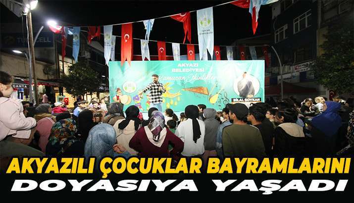 Akyazı Belediyesi tarafından ilçe merkezinde düzenlenen Ramazan etkinlikleri ikinci gününe de ilk gün olduğu gibi yoğun ilgi gördü. 23 Nisan Ulusal Egemenlik ve Çocuk Bayramı dolayısı ile gerçekleştirilen etkinlikte Akyazılı çocuklar bayramlarını doyasıya yaşadılar. Oyun parkurlarında eğlenen çocuklar, yarışmalar, hacıvat-karagöz ve meddah gösterileri ile keyifli vakit geçirdiler. Çocukların yaşadığı mutluluğun çok değerli olduğunu belirten Akyazı Belediye Başkanı Bilal Soykan, “23 Nisan Ulusal Egemenlik ve Çocuk Bayramı dolayısı ile düzenlediğimiz etkinliğe bu kadar ilgi olması ve çocuklarımızın mutluluğu bizim için çok değerli. Daha önce düzenlediğimiz ve geleneksel hale getireceğimiz çocuk ve kızak şenlikleri gibi çocuklarımıza ve hemşerilerimize yönelik etkinlikler yapmaya devam edeceğiz” dedi.