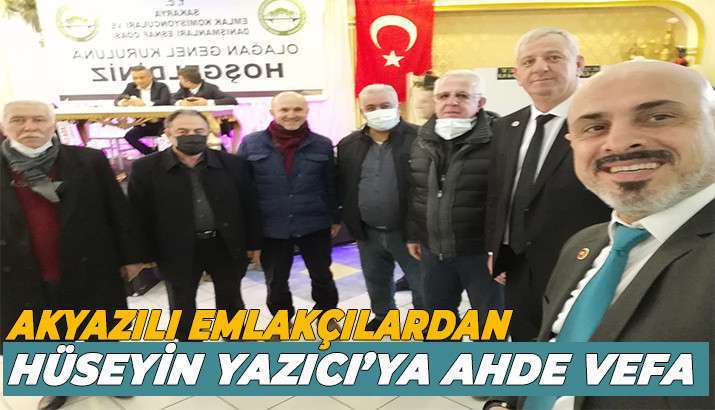 2010 yılından bugüne Sakarya Emlak Komisyoncuları ve Danışmanları Esnaf Odasında yönetim kurulu üyesi olan Akyazı Emlak sahibi emlak müşaviri Hüseyin Yazıcı yeni dönemde de görevine devam edecek. Sakarya’da ilçeler arasında en çok katılım sağlayan Akyazı emlakçı meslektaşları ahde vefayı tam anlamıyla yerine getirmişlerdir.