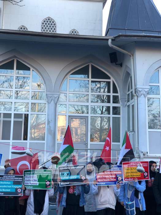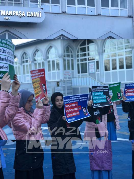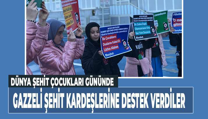 Halime Uzman'ın konuşmasının ardından öğrenciler Dünya Çocuk hakları bildirgesini okudular, Gazzede şehit düşen kardeşlerinin unutulmaması içinde temsili bebek ayakkabıları ve dövizler açılarak İsrail vahşeti boykot edildi.