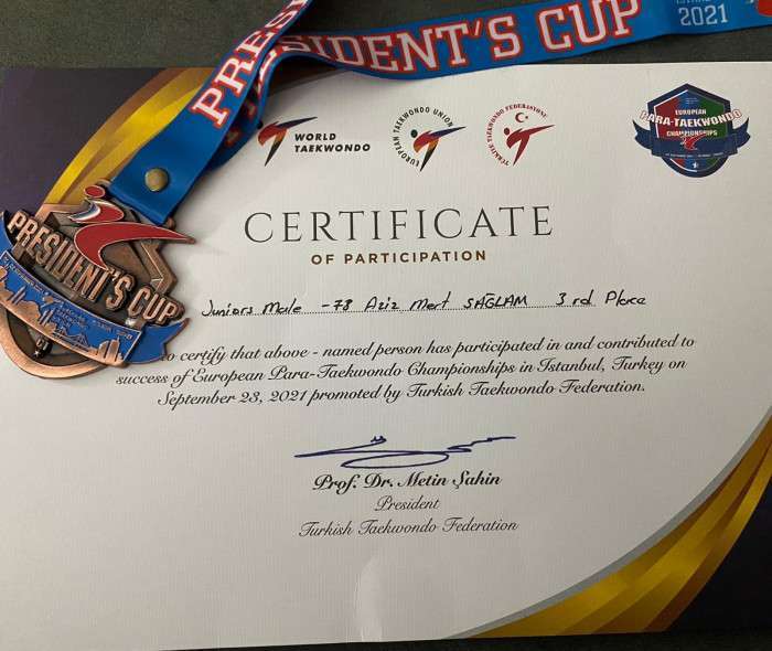 Avrupa Taekwondo Birliği (WTE) tarafından Türkiye Taekwondo Federasyonunun ev sahipliğinde 15 – 22 Eylül 2021 | Pullman Istanbul Hotel & Convention Center / İstanbul’da düzenlenen şampiyonadan Akyazılı sporcu Bronz madalya ile döndü.