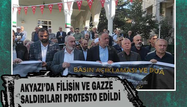 Akyazı Sivil Toplum Kuruluşları Platformu'nca Gazi Süleymanpaşa Camii önünde Cuma namazı sonrası Filistinlilerin verdiği haklı mücadelenin yanında olmak ve Gazze halkına destek vermek için protesto gerçekleştirildi. Platform tarafından yapılan açıklamada, uzun bir süredir, Siyonist işgalci çetenin Filistin halkına ve topraklarına yönelik uyguladığı sistematik işgal ve katliamın devam ettiği vurgulandı.